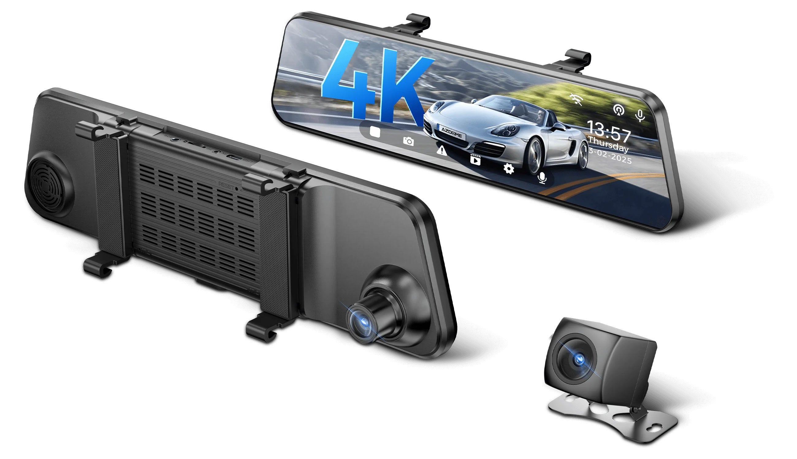 The AZDome PG17 Pro Wifi is a uniquely designed 2CH dashcam that can be placed over any rear-view mirror using the rubber brackets supplied. Its large 12-inch touchscreen LCD screen makes it a high-quality digital rear-view mirror. The rear camera is displayed completely and very clearly on the large screen, and with a single swipe on the screen, you can switch between the front and rear cameras.