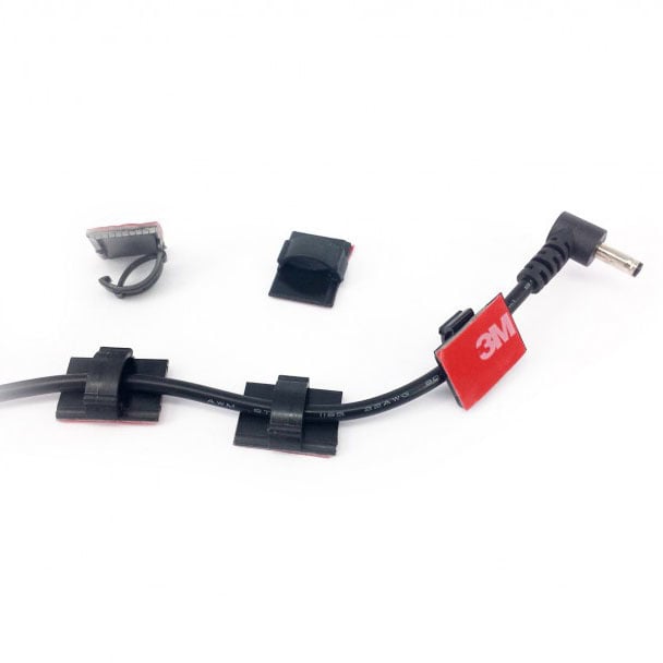 Handy set of 5 cable clips and a cable trimmer to neatly hide the dashcam's long cable(s) in the car. The cable clips are self-adhesive and can easily be attached to the windscreen or dashboard. The clip has room for one or more cables of different thicknesses.