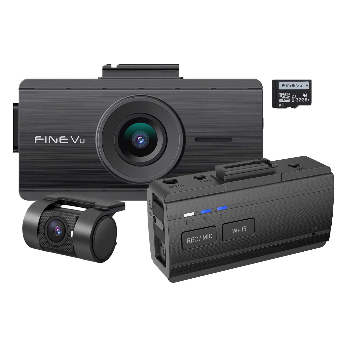 The FineVu GX35 Cloud 2CH has a built-in microphone so that sound is also recorded. The microphone can also be switched off if required.
