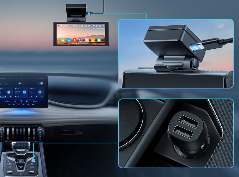 The Nanocam M93 Pro 5K dashcam automatically starts filming as soon as power is applied to the power supply. So simply connect it with the car charger and you have nothing else to worry about. If your car supplies permanent power via the cigarette power supply, it is wiser to use the hardwire kit to save the car battery.