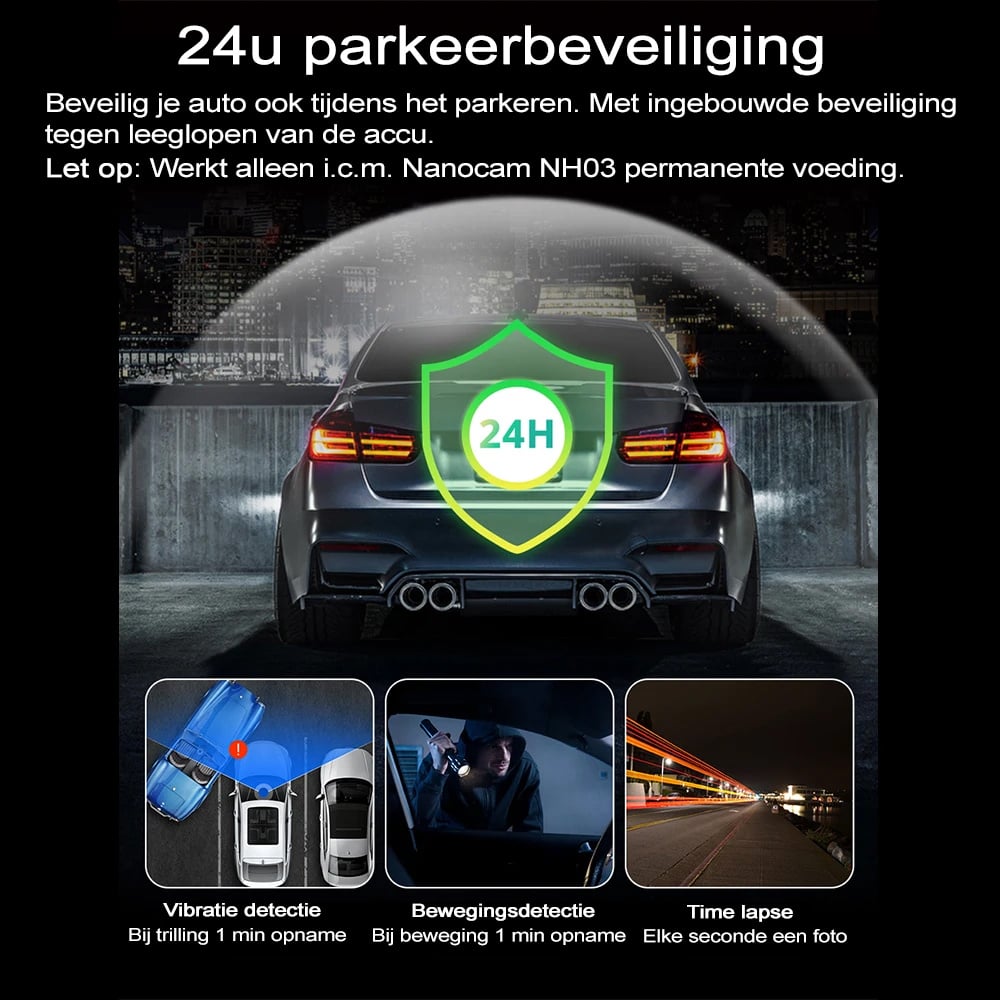 The Nanocam M93 Pro is the first 5K dashcam. With this very high-quality dashcam, you record everything around your car in crystal-clear quality. The Nanocam M93 Pro is equipped with virtually all possible functions such as a large 4.0-inch touchscreen LCD screen, Wifi and GPS. With the extended parking mode, you can also secure your car while parking and, by supporting 512gb Micro SD cards, you can also store several days' worth of videos.