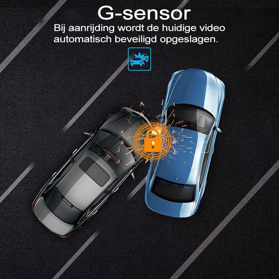 With its built-in G-sensor, the dashcam records collisions or violent vibrations. In the event of an impact, images are automatically saved securely so they are no longer lost. They can no longer be overwritten or deleted via the dashcam.