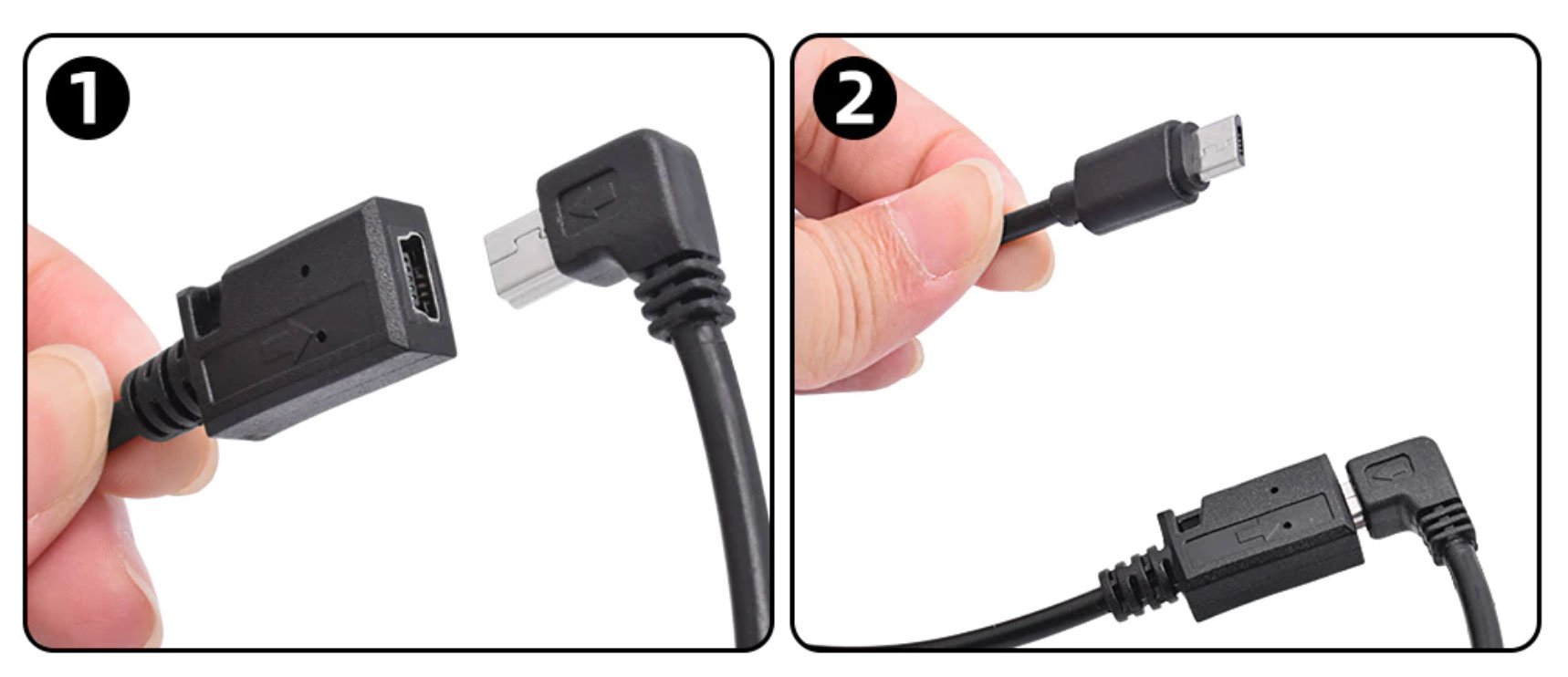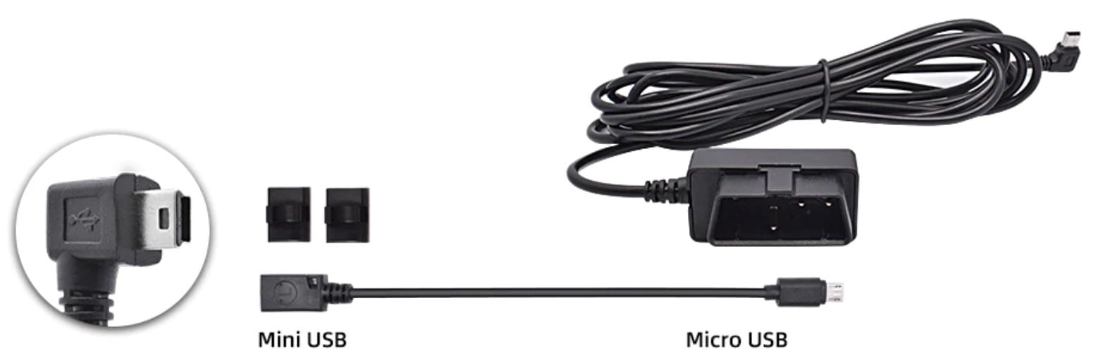 This OBD2 Hardwire kit has a right-angled Mini USB plug but comes with an extra straight Micro USB adapter. This allows the OBD2 power supply to be used with almost any dashcam.