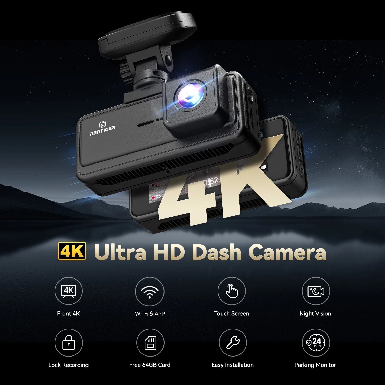 Redtiger A8 2CH 4K Touch Wifi GPS 2CH 64gb dashcam