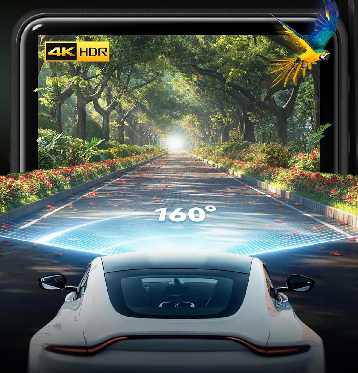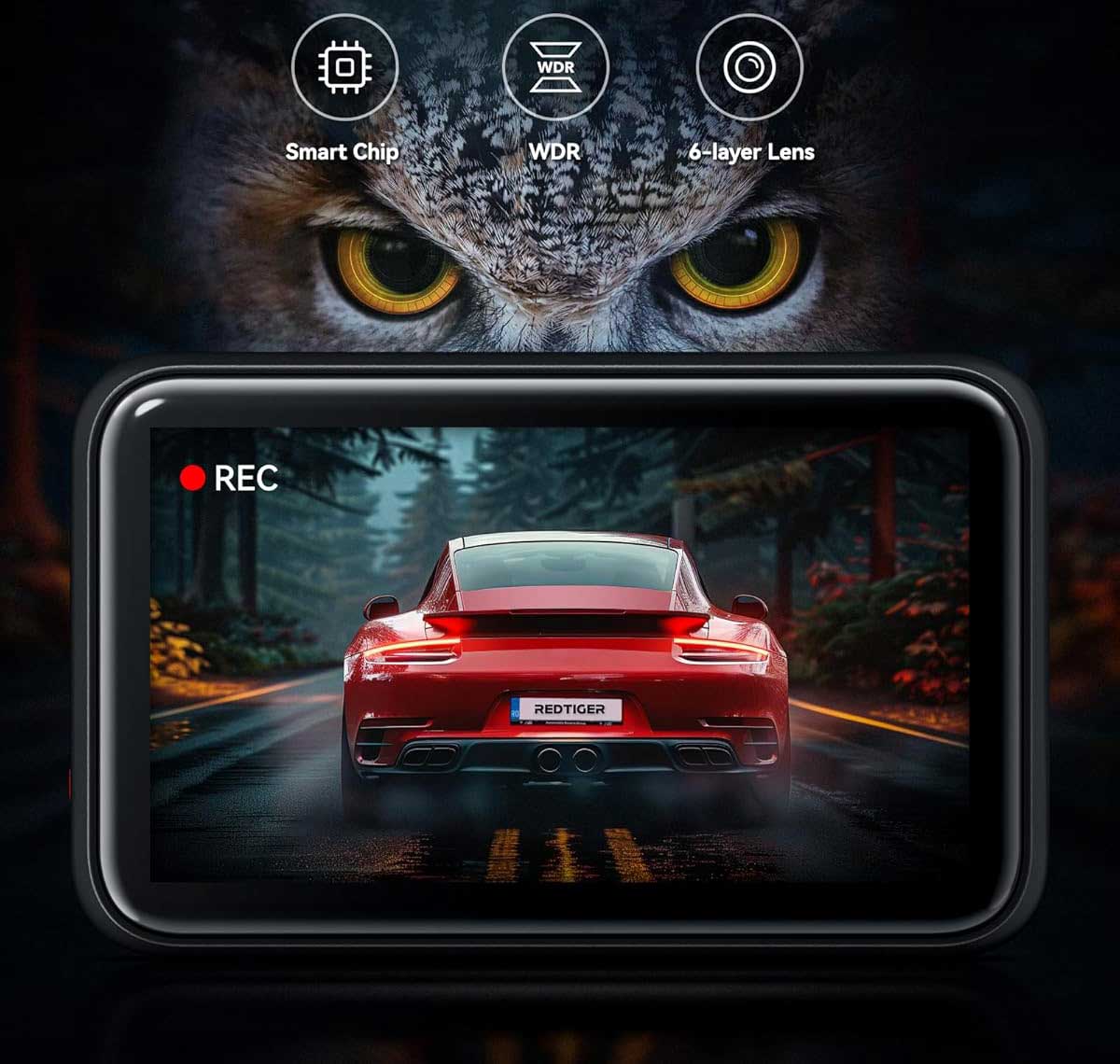 The Redtiger F4 4K Wifi GPS has a 160-degree wide-angle lens. This allows a large area around the car to be recorded so that every situation is properly recorded.