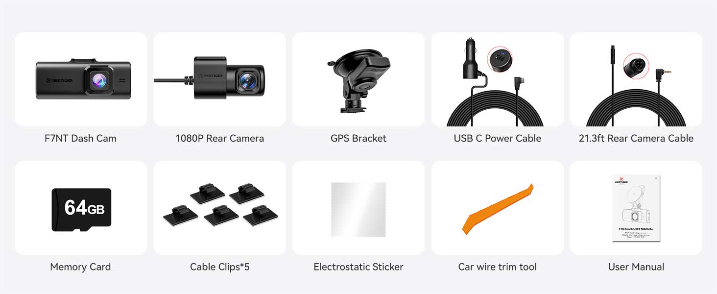 Redtiger F7NT 4K Touch Wifi GPS 2CH 64gb dashcam
