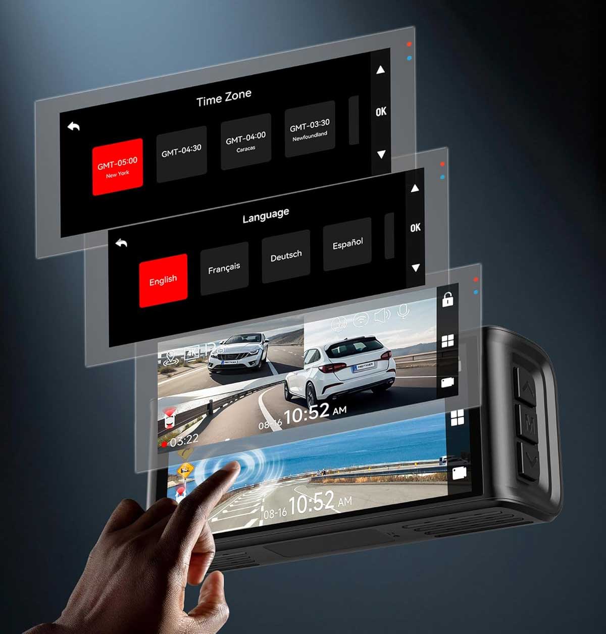 Perhaps the best feature of this Redtiger F7NT is the bright widescreen 3.18-inch touchscreen LCD. The screen displays live images and allows you to change settings. You can also easily watch recorded videos. The screen can be turned off with a screensaver while driving to avoid being too much of a hindrance.