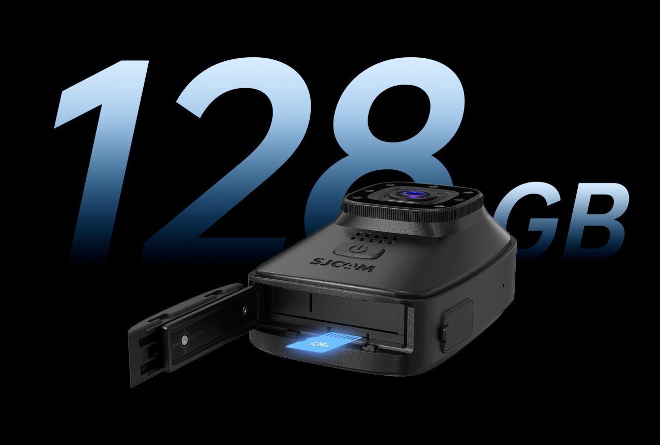 The SJCAM A10 supports Micro SD cards of up to 128gb (not included). This is good for around 6 to 10 hours of 4K 60fps videos. With Loop recording enabled, the oldest footage is automatically overwritten for new ones when the SD card is full. This keeps the camera recording continuously and the last 6-10 hours of videos are always saved (with 128gb card).
