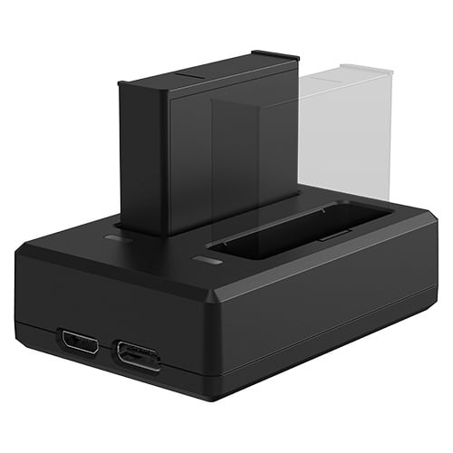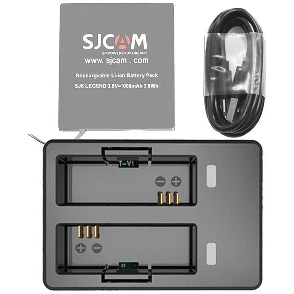 SJCAM Dual battery charger for two SJCAM SJ6 (Legend and Pro) batteries. Useful for charging one or two batteries of the SJCAM SJ6 or SJ6 Pro simultaneously and off-camera. With Micro USB and USB-C port, suitable for SJCAM SJ6 batteries only.