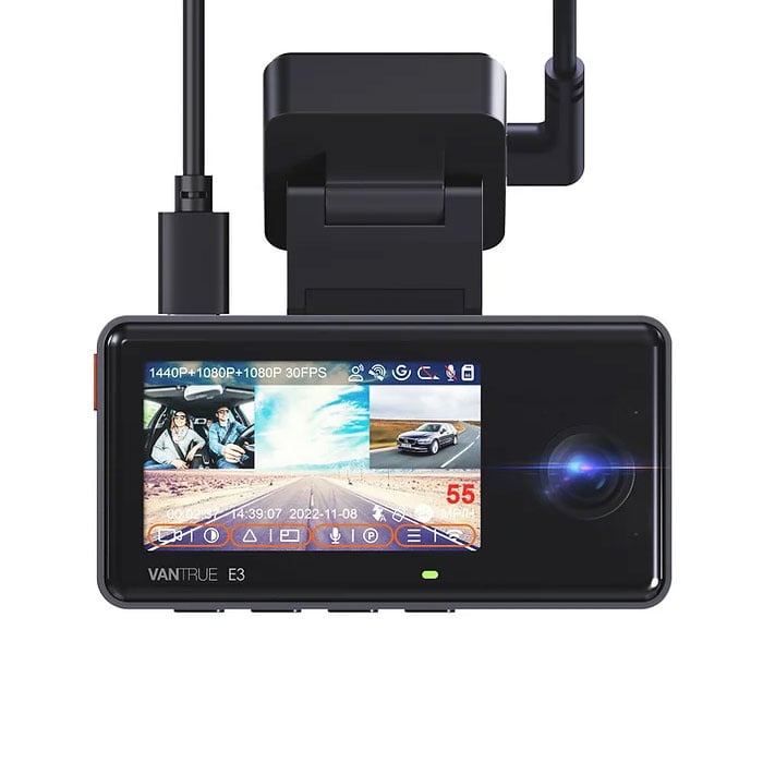 The Vantrue E3 has a built-in G-sensor. This sensor records vibrations in the event of a collision. The current video is stored securely in that case.