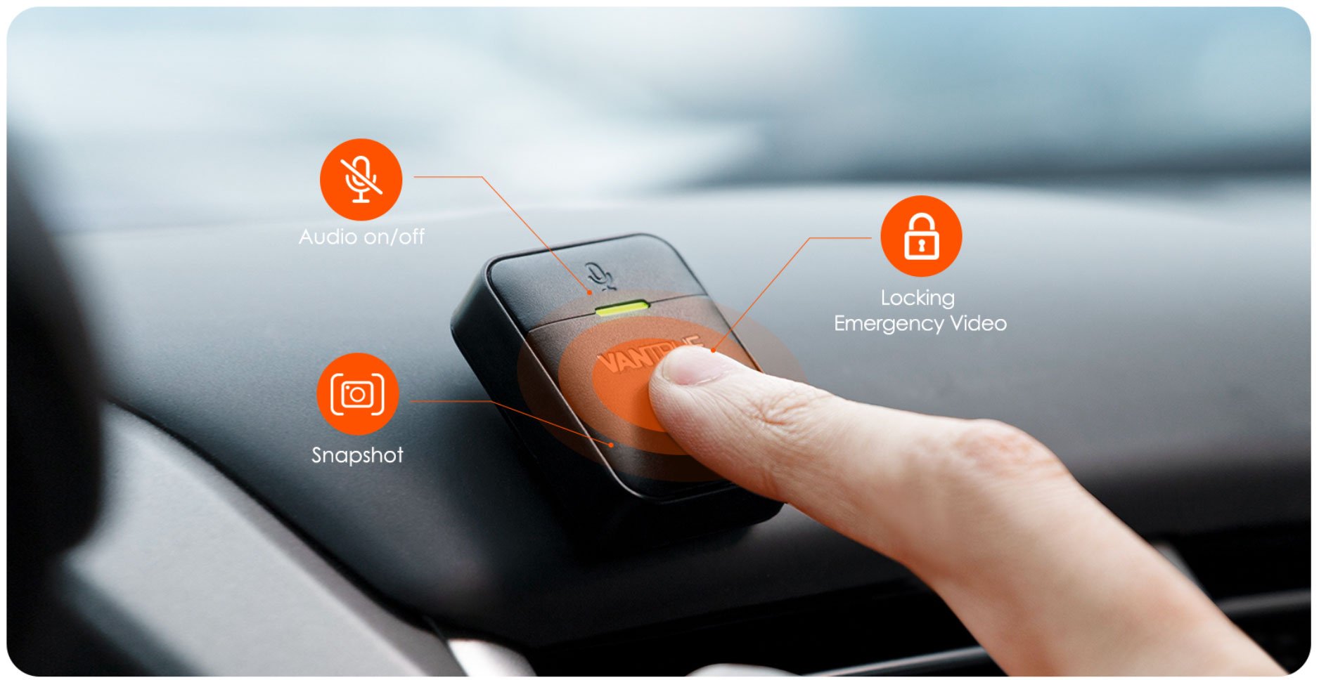 The Vantrue E3 comes standard with a handy Bluetooth SOS button. You place this button anywhere in the car and with one push of the button you can take a photo and secure video or turn the dashcam's microphone on and off.