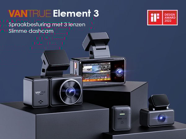 The Vantrue Element 3 (E3) is the ideal dashcam for recording in front, behind and inside the car. This is because the E3 is equipped with 3 cameras. Two cameras film everything in front and behind the car and the integrated interior camera with infrared LEDs films inside the car. The Vantrue E3 is therefore ideal for taxis or to secure your car while parking. In addition, the Vantrue E3 has Wifi and GPS on board and comes with handy Bluetooth SOS button.