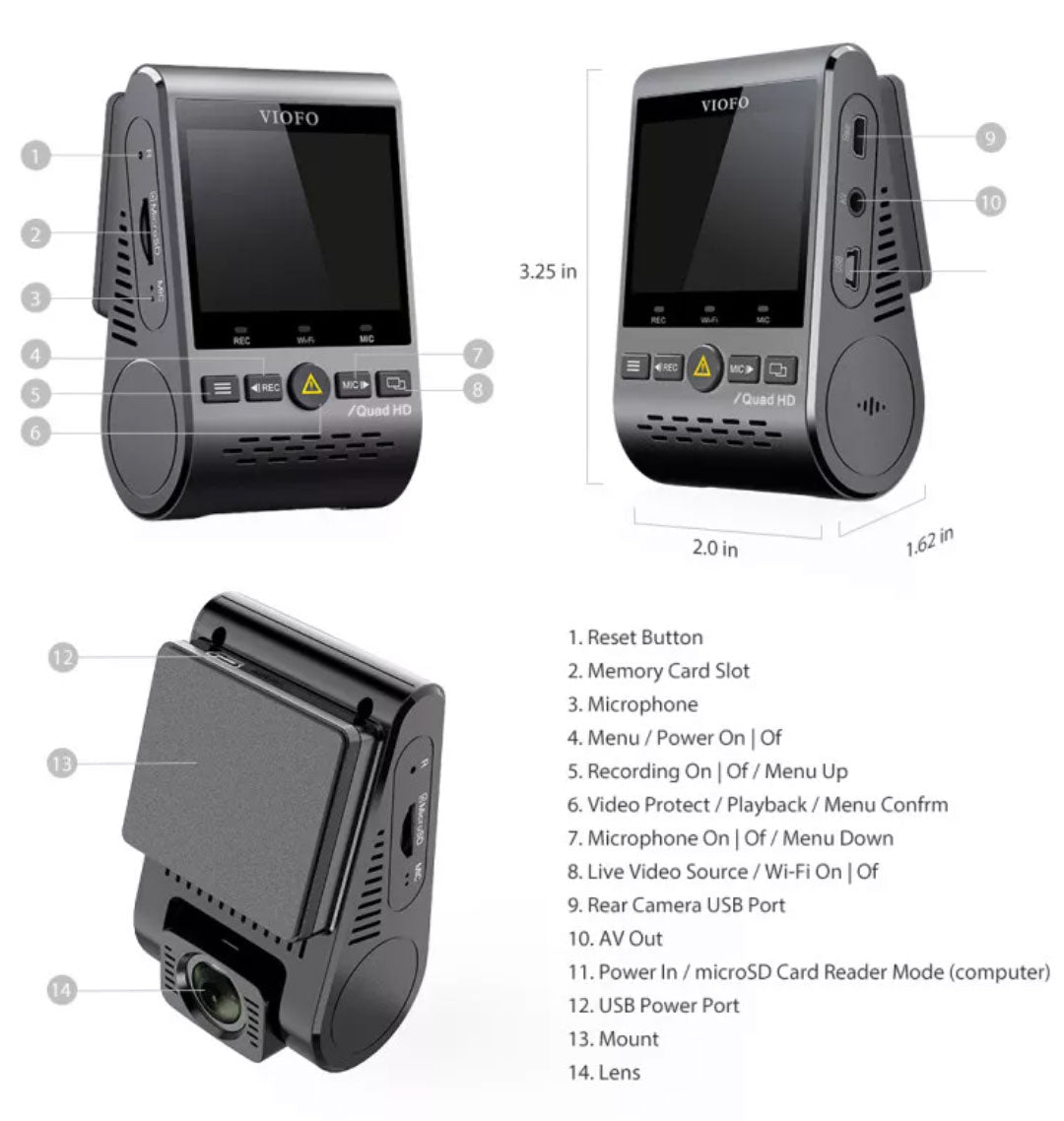 Viofo A129 Plus 2CH Duo 2K Wifi GPS dashcam