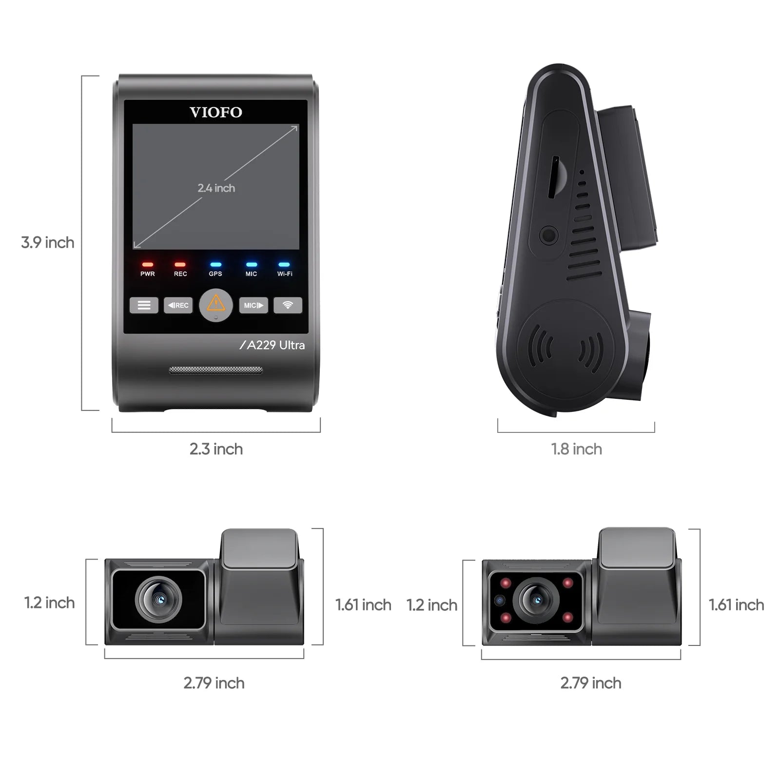 This Viofo A229 Ultra 3CH 4K Wifi GPS dashcam has a 2.4-inch HD LCD screen. The screen displays live images and allows for easy menu operation. The built-in screensaver automatically turns off the LCD screen after a set number of minutes, if desired, so that it does not distract the driver.