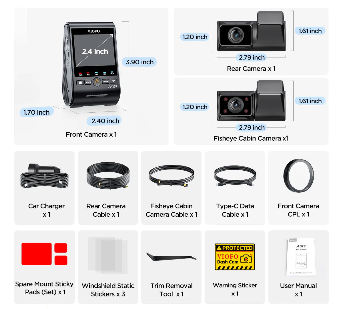 The Viofo A329S 3CH Pro 4K Wifi GPS is the latest model in the popular and reliable A329S series with no fewer than three cameras. The Viofo A329S 3CH 4K can monitor the road at the front and rear and film the driver and passengers with the interior camera. With the built-in 5.0MP Sony Starvis 2 image sensor, the A329S delivers razor-sharp images, both at the front and rear and inside the car.