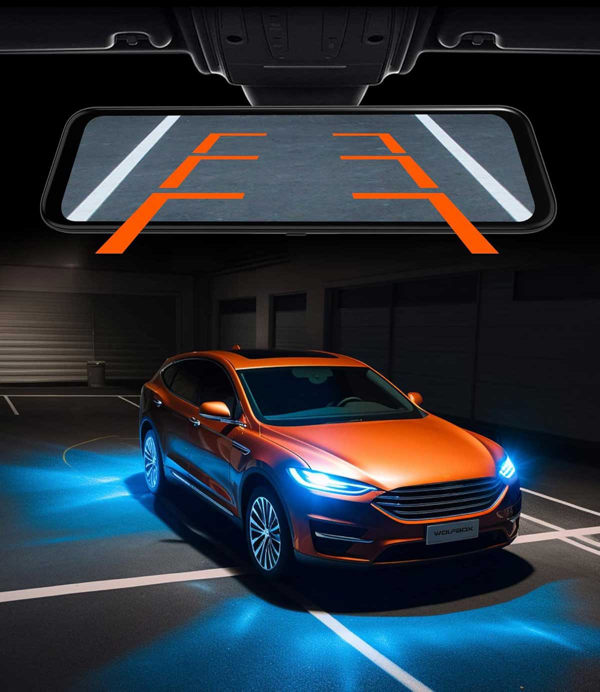 The Wolfbox G840H is a super stylish and handy 2K + FullHD mirror dashcam and digital rearview mirror in one. The Wolfbox G840H is a dual channel camera with a rear camera. The mirror also functions as a large 12.0 LCD screen. The image from the rear camera is displayed large on the LCD screen so you have a perfect view to the rear.