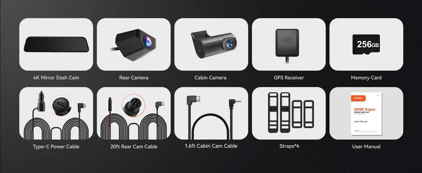 Wolfbox G900 Tripro cabin 3CH 4K Wifi GPS 256gb Mirror dashcam
