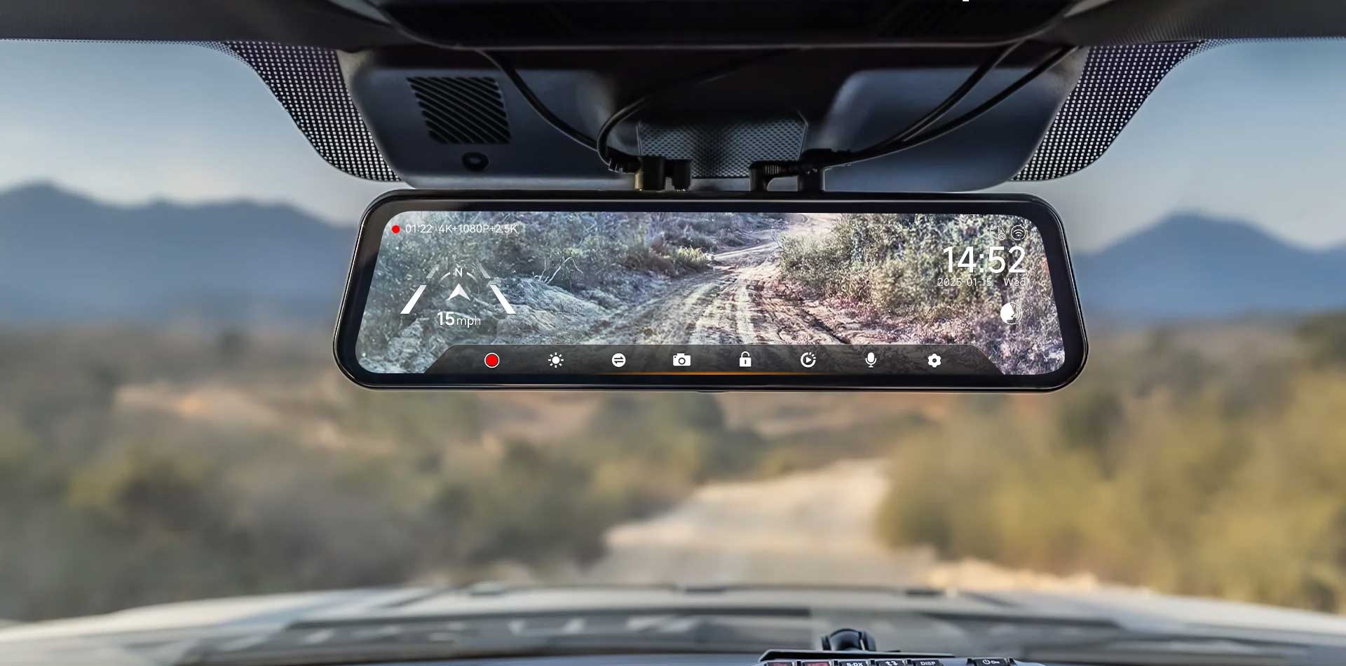 • 3-channel mirror dashcam with 3rd interior camera.