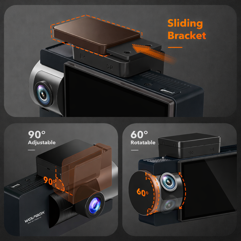 The body of the i17 3CH 4K Wifi GPS dashcam can be rotated 150 degrees vertically, allowing you to always point it in the right direction.