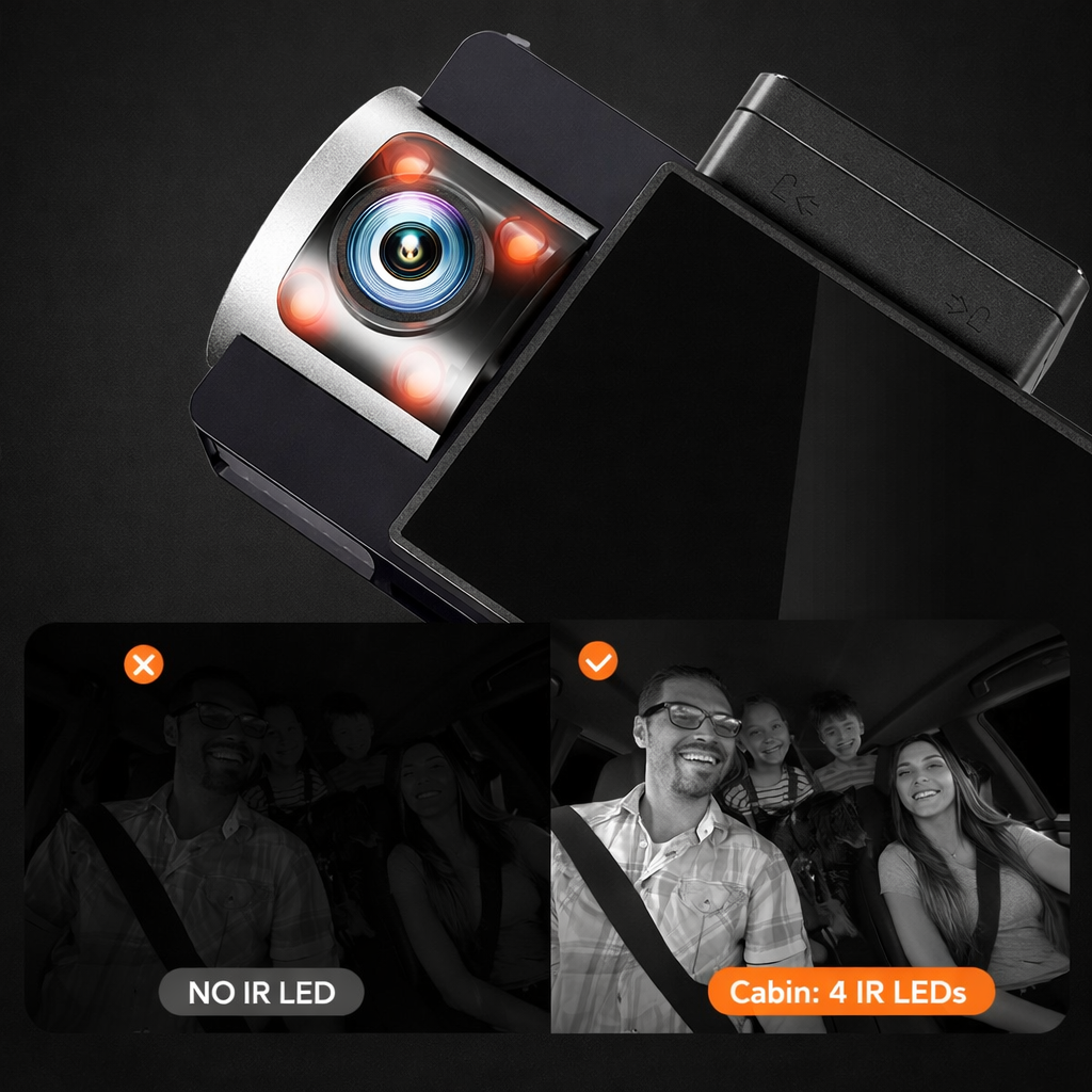 The i17 3CH 4K Wifi GPS dashcam films with very high-quality 4K 3840p resolution at 30fps on the front and FullHD on the inside and back. The i17 3CH delivers excellent performance, especially in the dark. The 8.0 Megapixel Sony Starvis IMX335 sensor in this dashcam guarantees crystal clear videos. For even better night vision, the interior camera is equipped with four infrared LEDs.