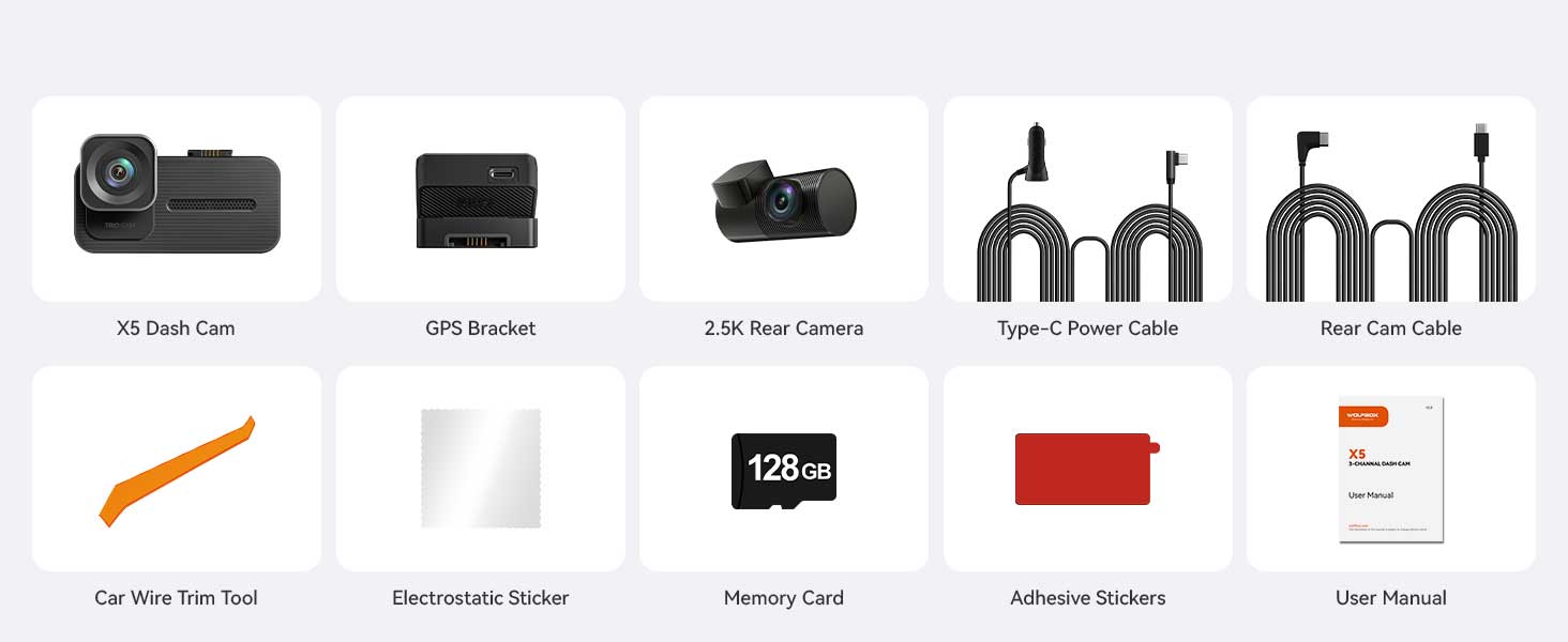 Wolfbox X5 Touch 3CH 4K Wifi GPS 128gb dashcam