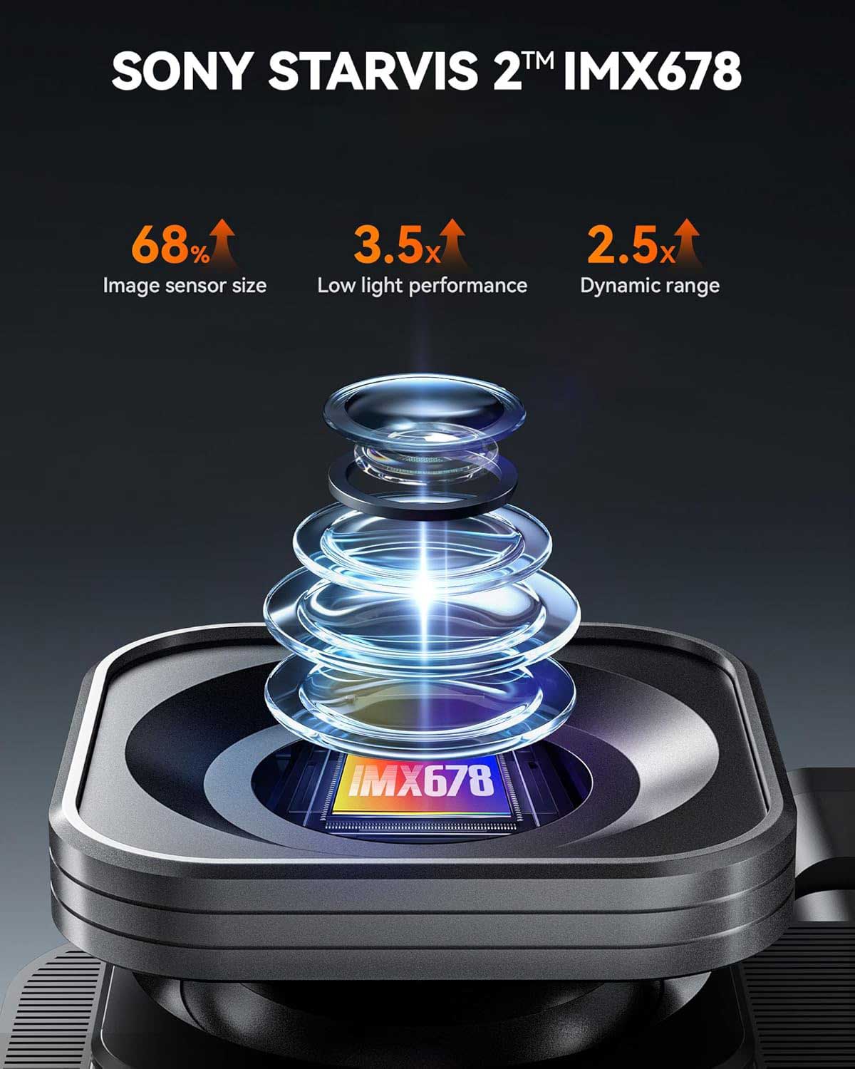 The X5 3CH 4K Wifi GPS dashcam films with very high-quality 4K 3840p resolution at 30fps on the front and FullHD on the inside. The rear camera has a 2.5K resolution. The X5 3CH delivers excellent performance, especially in the dark. The 8.0 Megapixel Sony Starvis 2 sensor in this dashcam guarantees crystal clear videos.
